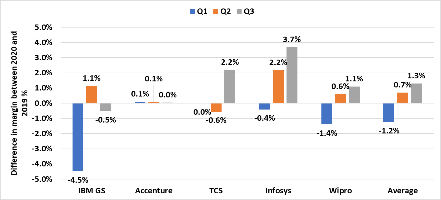 Margins across the board have improved for the services players from this time last year. Partly this is due to the early intervention by these organizations to control costs when it was clear revenue would be impacted. Plus, a significant line of expense for many of these organizations is travel, so a substantial reduction in travel costs has helped keep margins at bay. Although it is also a testament to how agile these large IT firms have become, taking less than a quarter to scale down in response to this crisis.